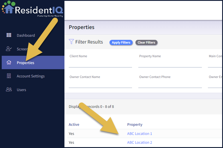 To view, set, or adjust your Resident IQ (RIQ) Score Model, go to Properties and select the property that you would like to work on.